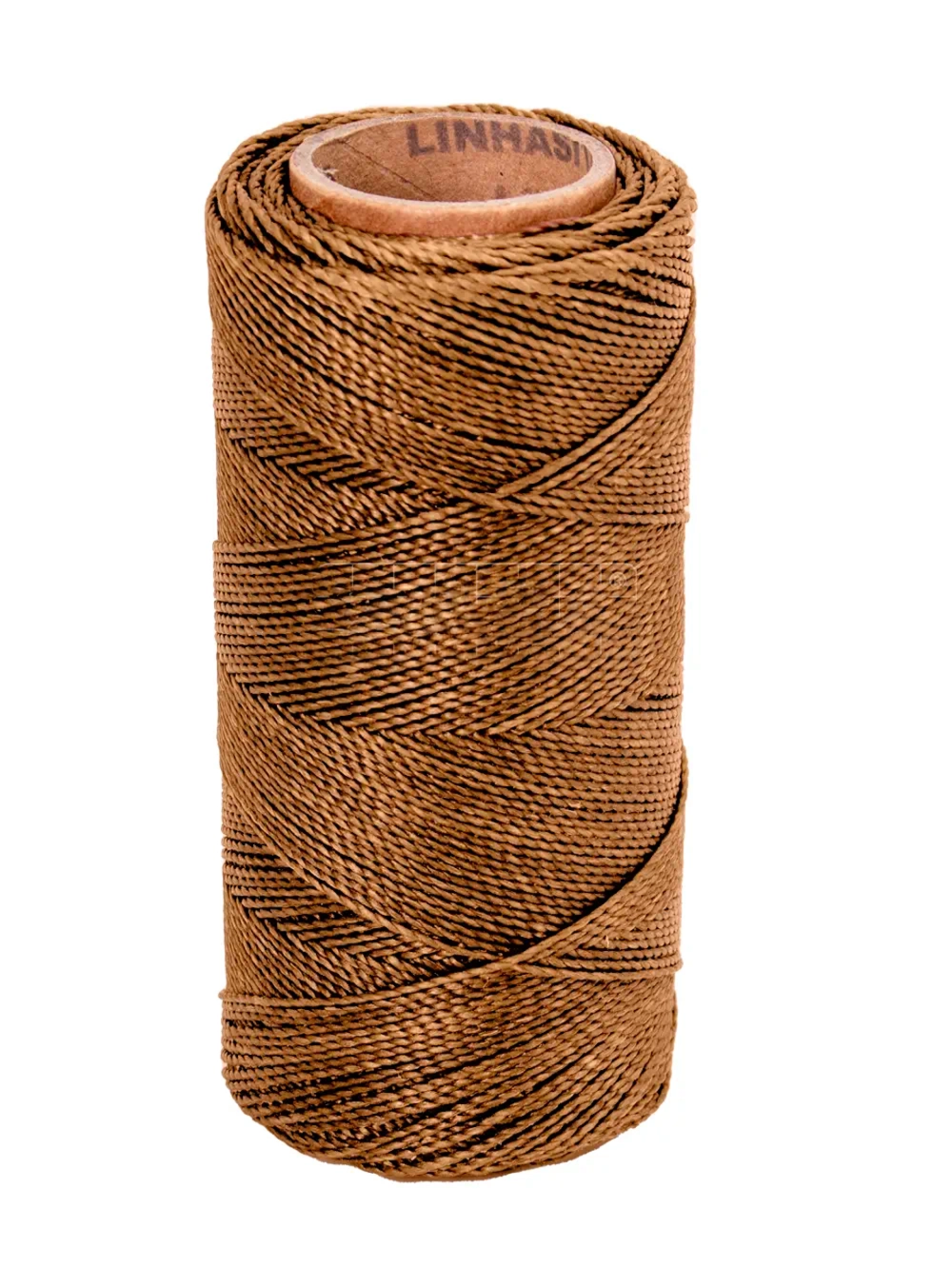 Compuesto por 4 hebras de 100% poliéster encerado de alta tenacidad, logrando un diámetro final de 1 mm y una resistencia excepcional. Este hilo de poliéster, conocido por su alta tenacidad, se beneficia de un acabado encerado que mejora su desempeño en costuras manuales y artesanales, además de hacerlo más resistente al paso del tiempo.