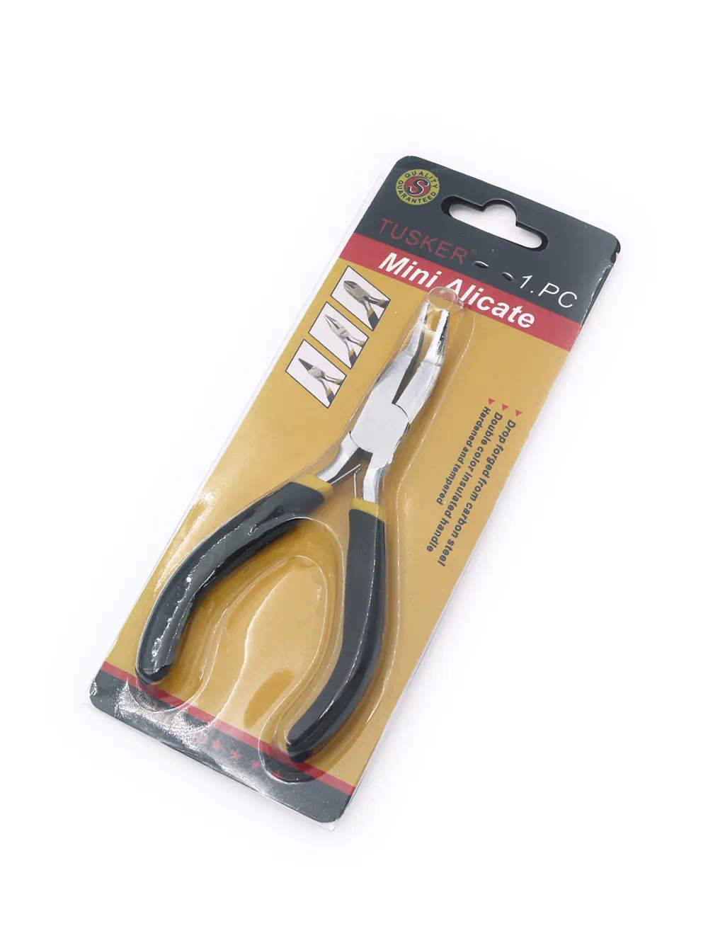 Mini alicate de acero, acabado niquelado, mangos engomados,punta curva